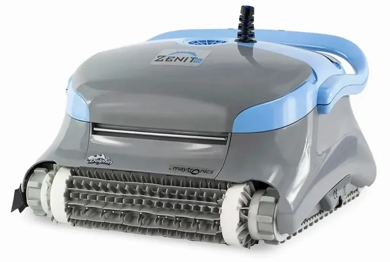 Ontdek de Dolphin Zenit 10, een top bodemreiniger voor zwembaden tot 10 x 5 meter, bekend om zijn kracht, betaalbaarheid en gebruiksgemak! Dankzij de gecombineerde borstelset en 17m3/uur capaciteit, is de Zenit 10 geschikt voor alle zwembadsoorten, inclusief zwemvijvers met kleverige bodems met behulp van wonderbostels. Dankzij zijn lichte gewicht van 8,5 kg is de robot makkelijk te hanteren, zowel in het water als tijdens het opbergen in het meegeleverde rek!